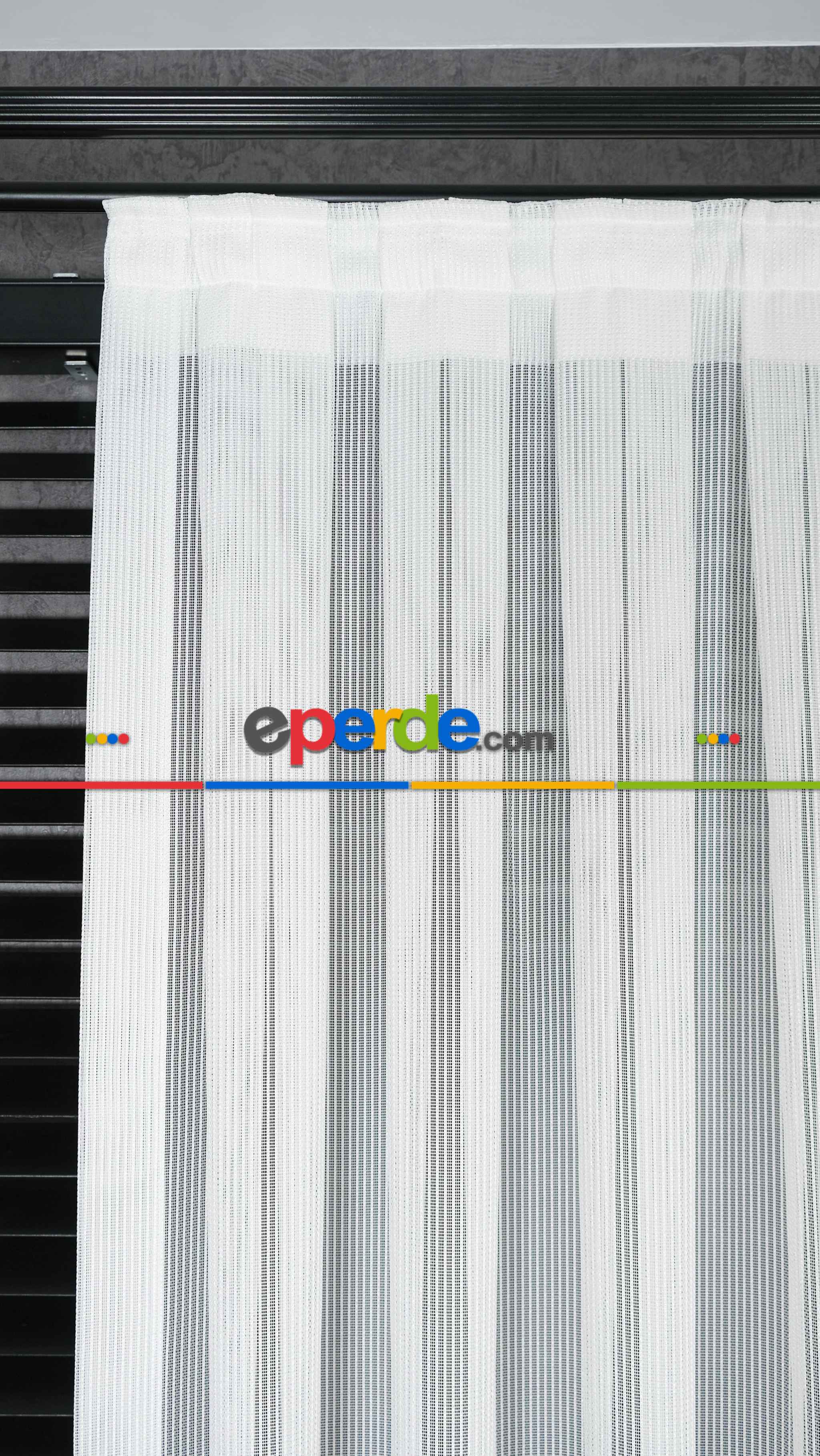 Exculusive Ekru Simli Çizgili Tül Perde Stripe Ürün Açıklaması