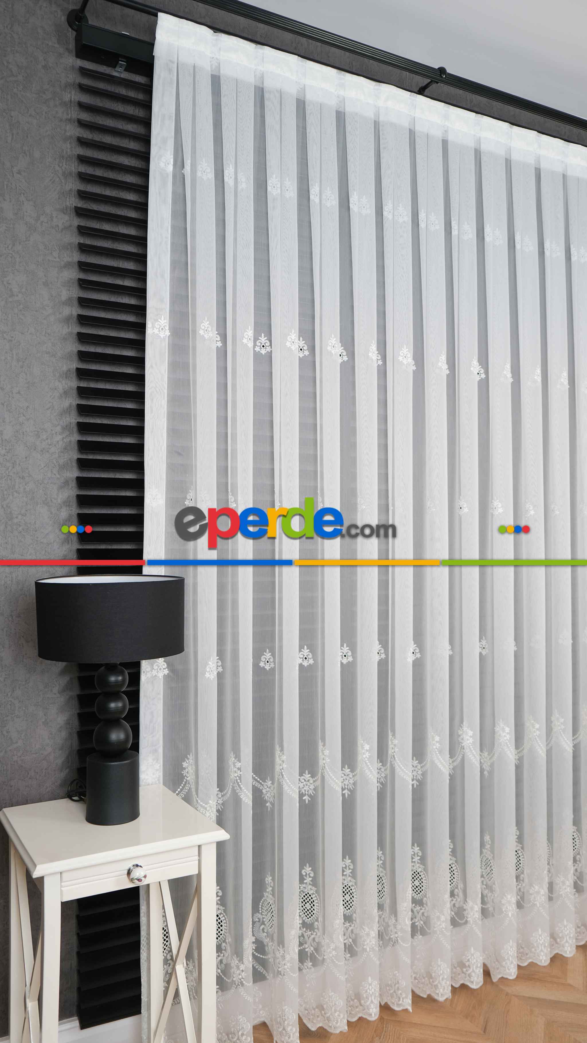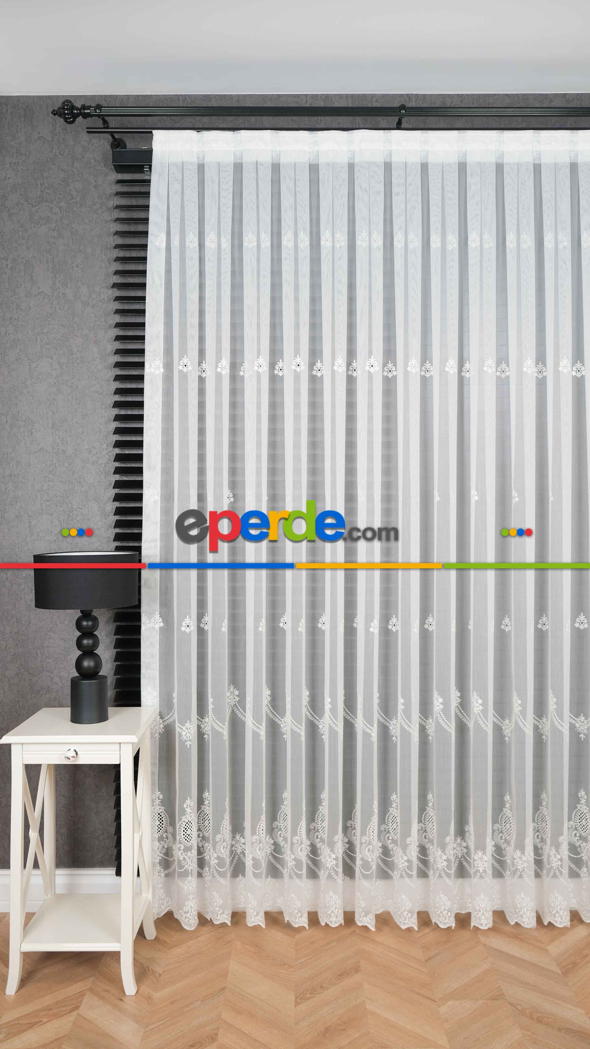 Ekru Nakış İşlemeli Tül Perde Ürün Açıklaması