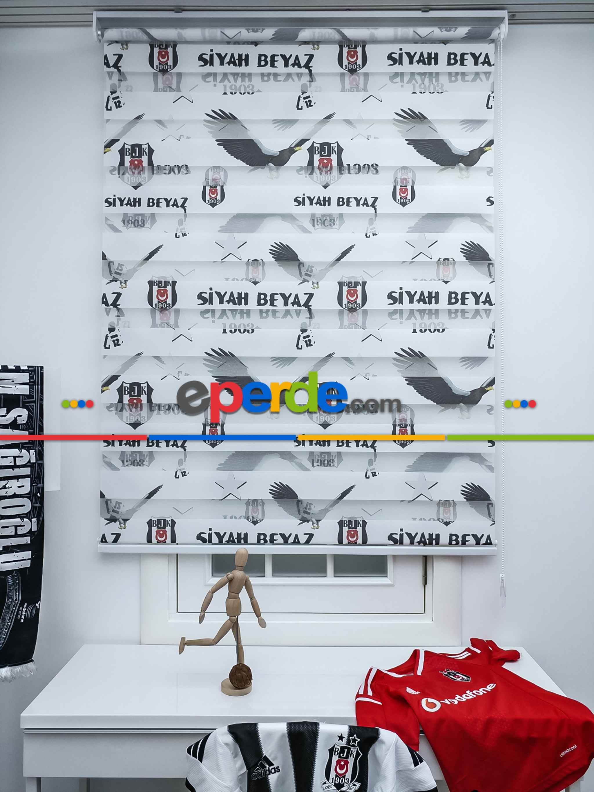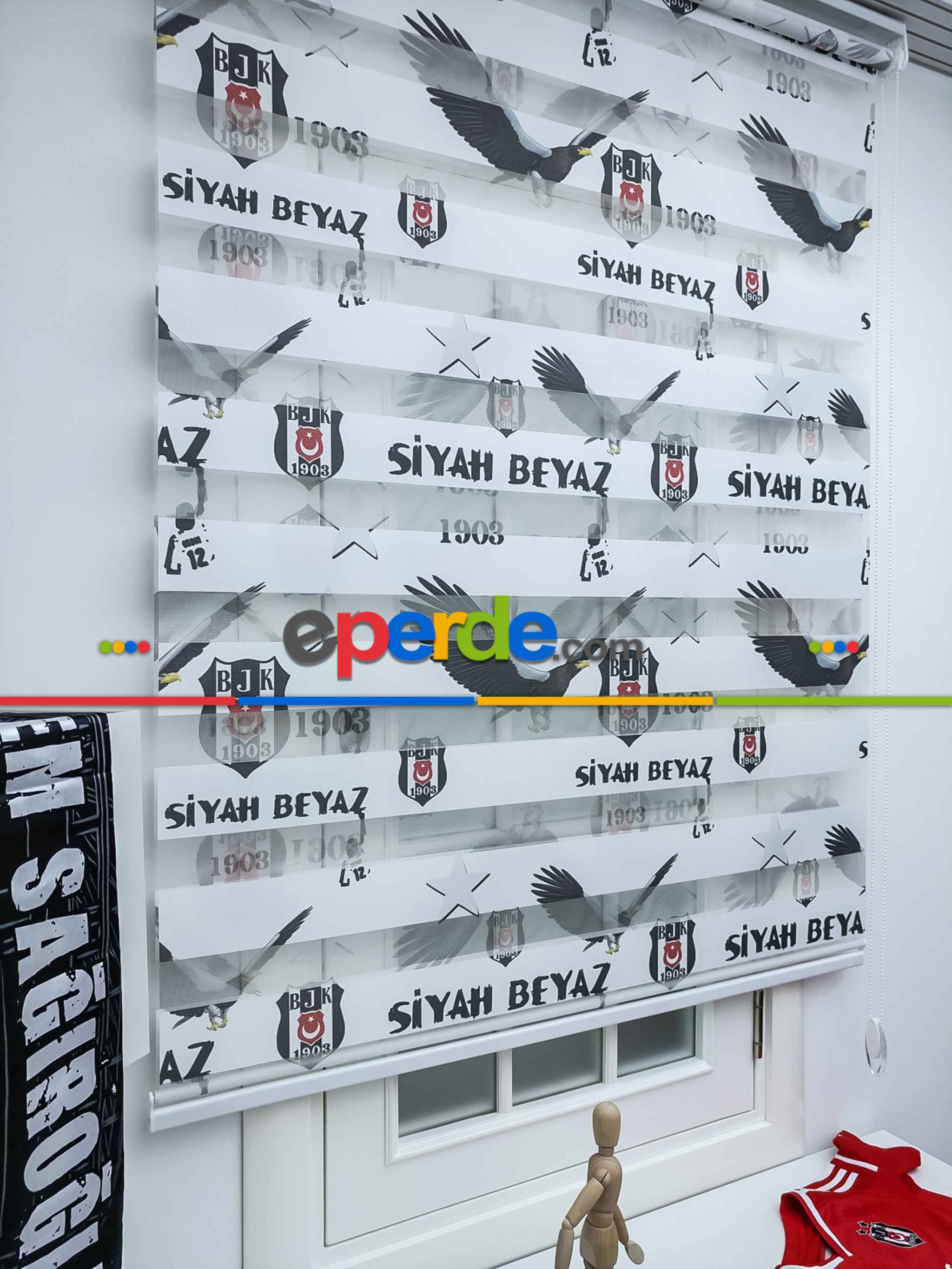Zebra Perde- Dijital Taraftar Baskılı Beşiktaş Zebra Perde- Siyah-beyaz » Eperde
